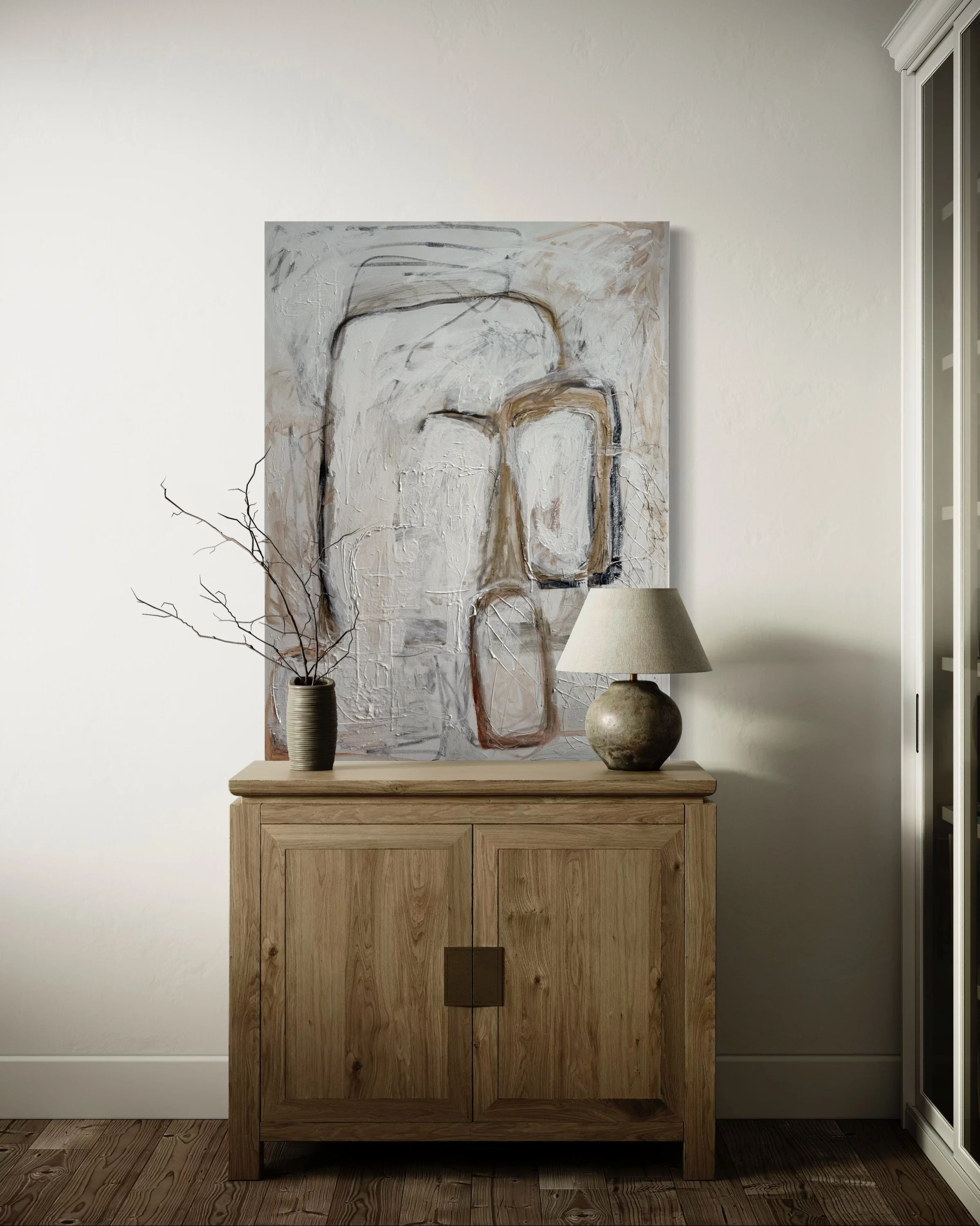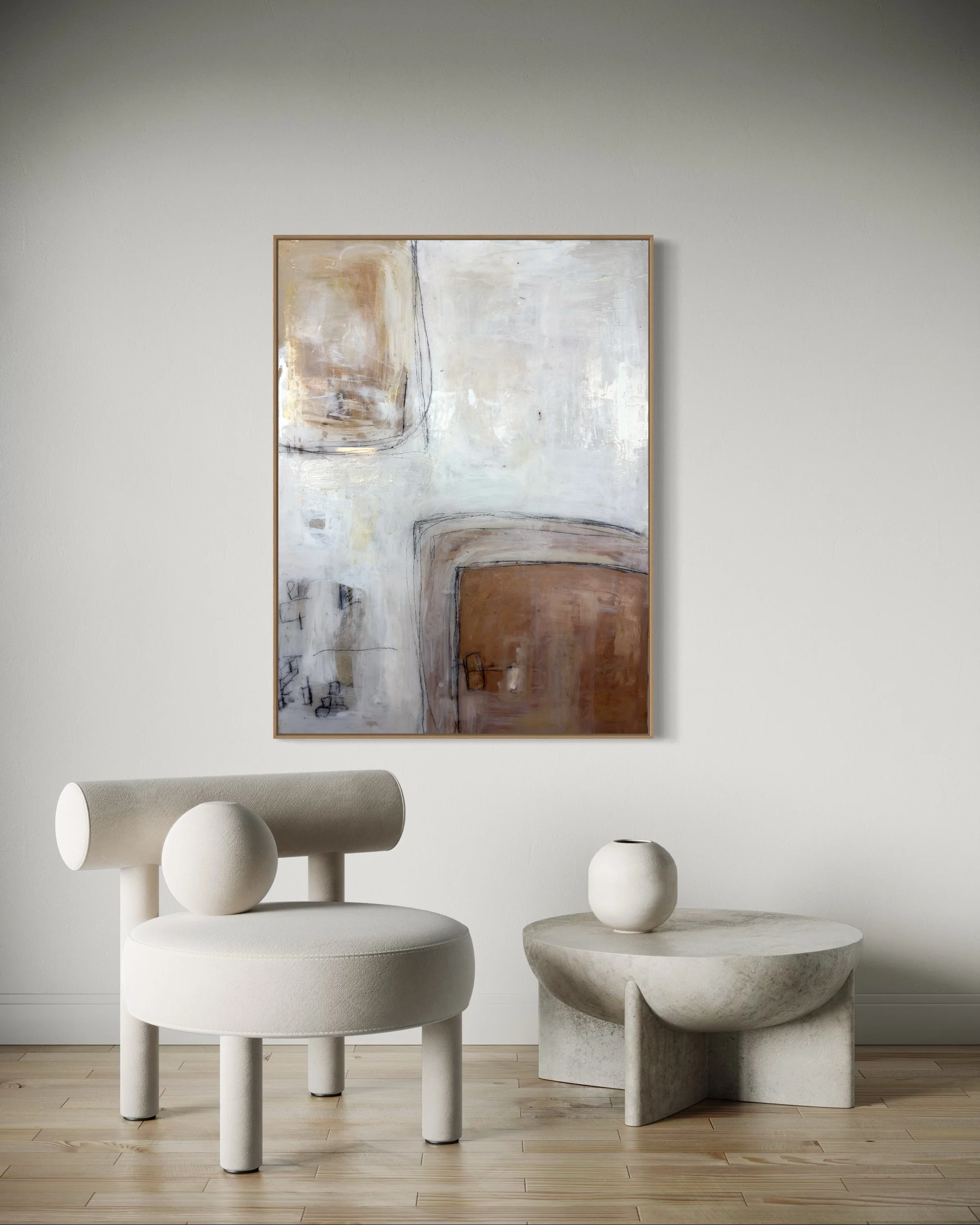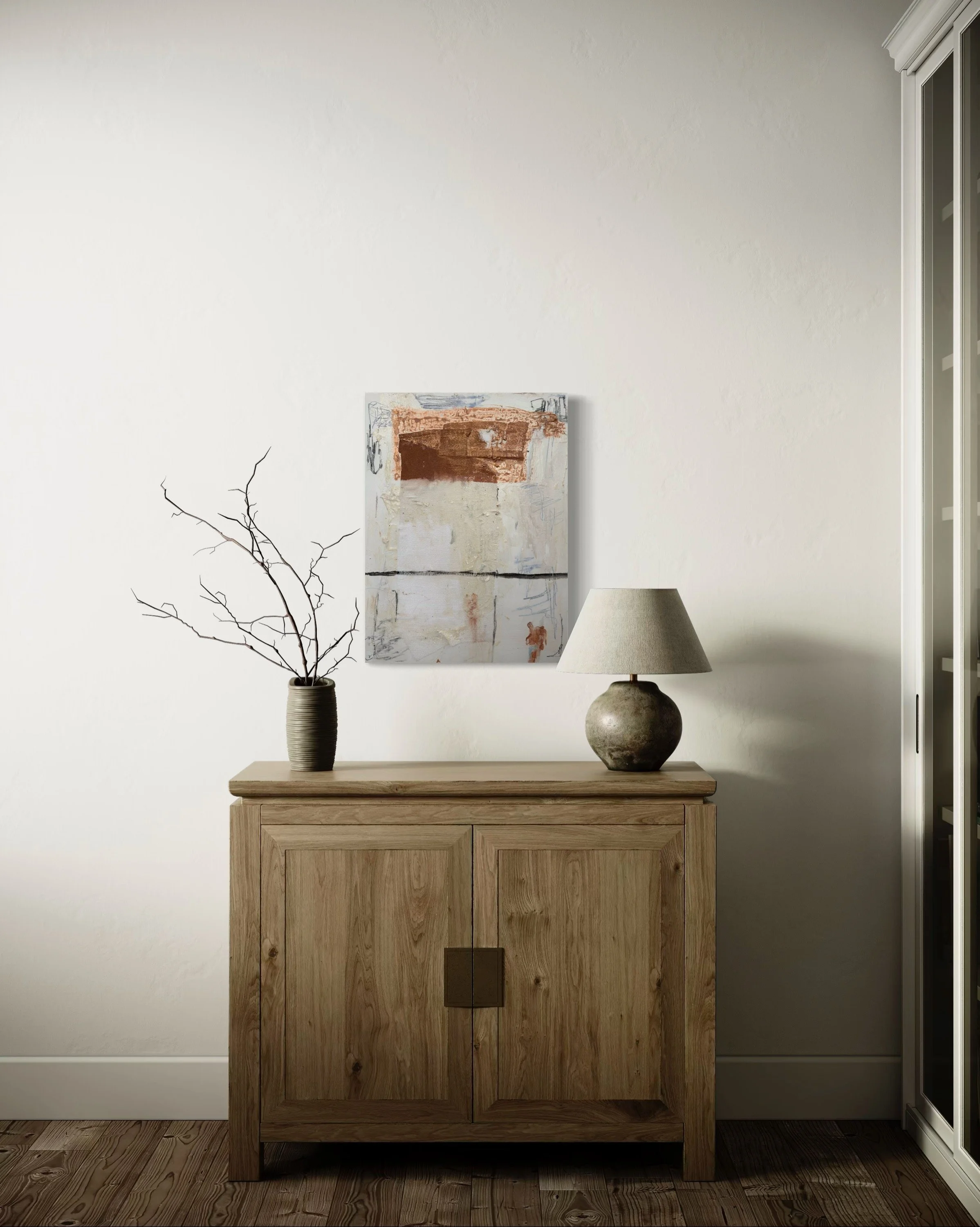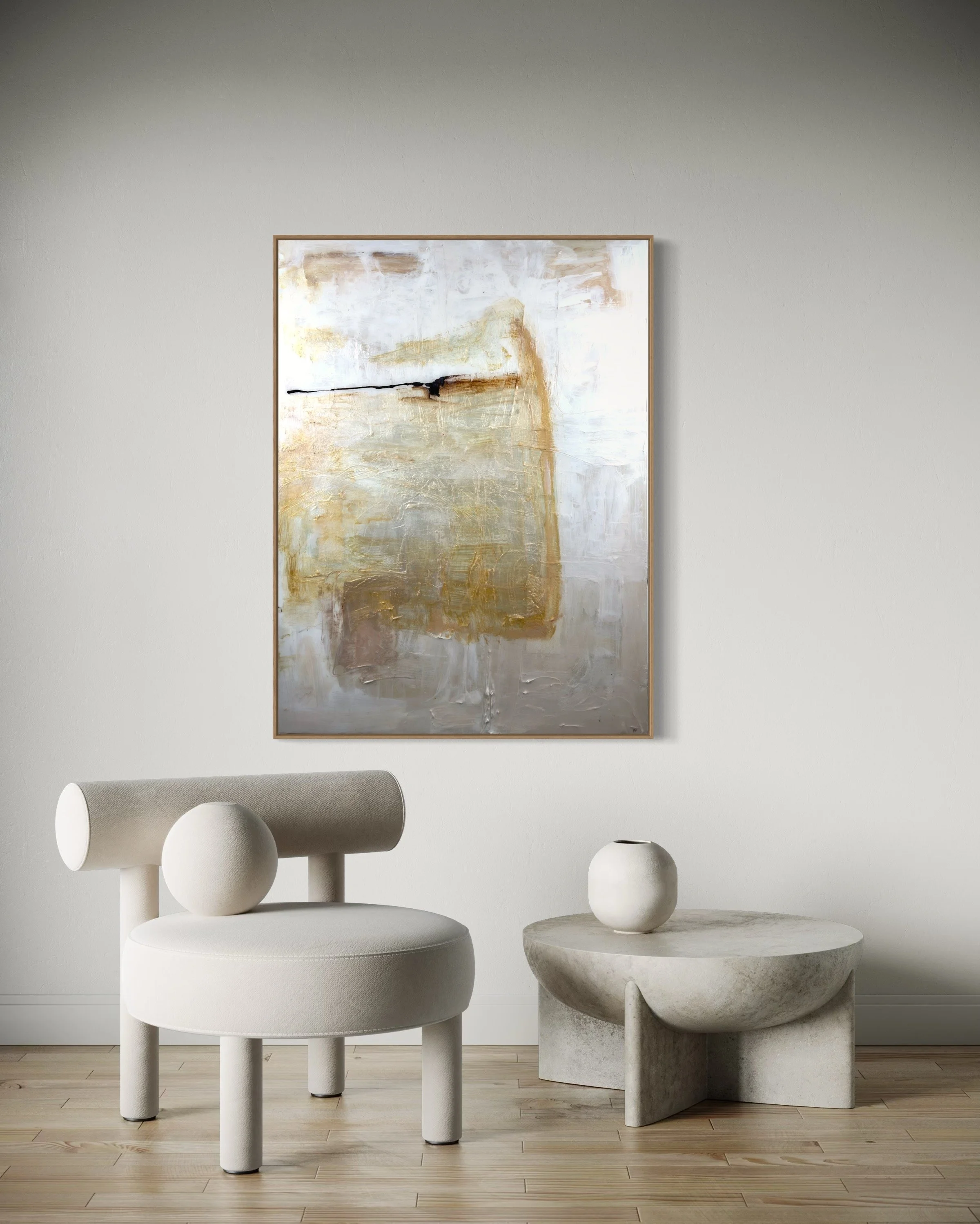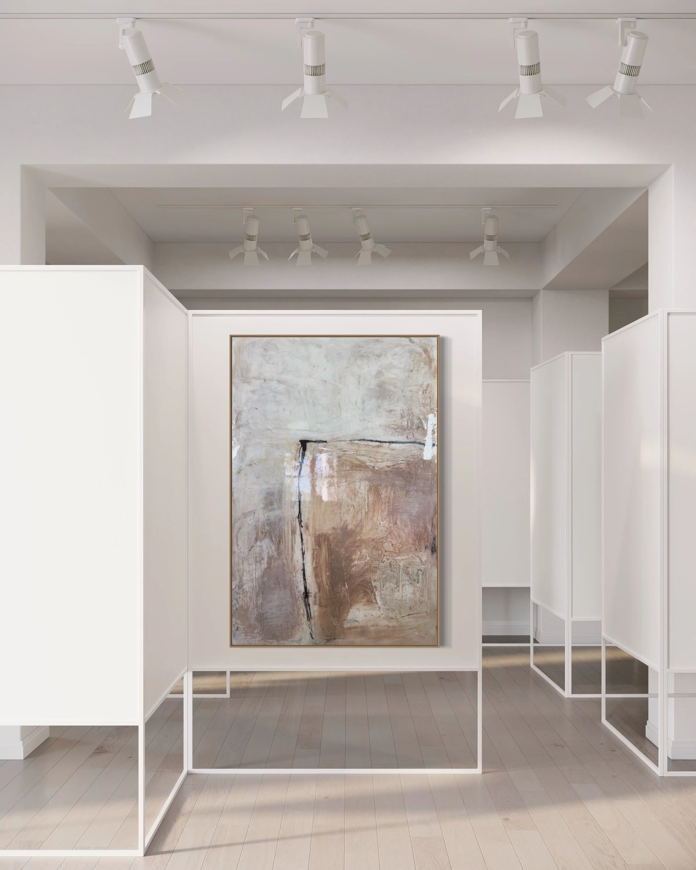 Specializing in acrylic and mixed media on panel, Lewis’ work features layered textures and neutral tones, creating timeless, sophisticated compositions that evoke harmony and emotional depth. Perfect for those seeking a serene yet powerful visual experience