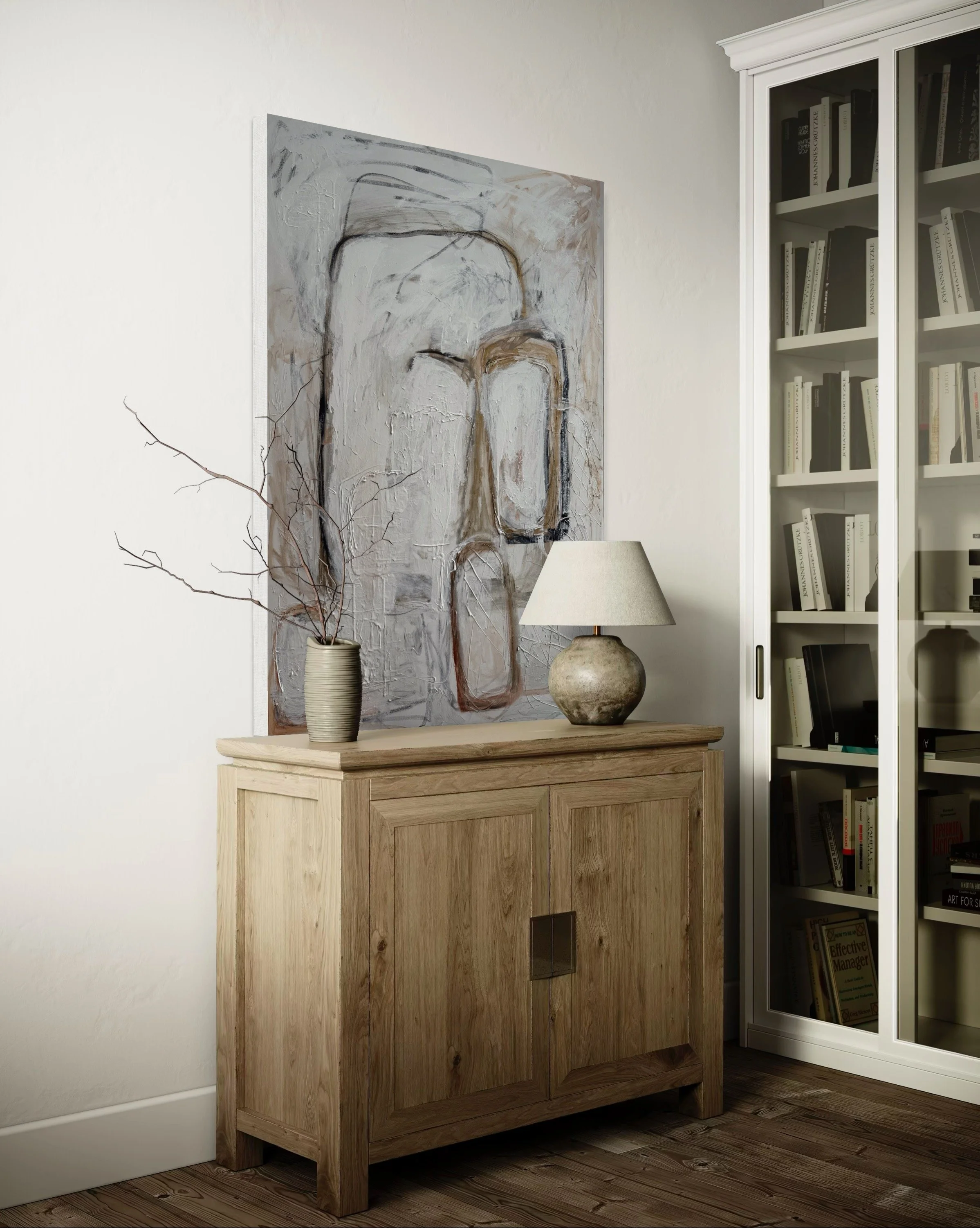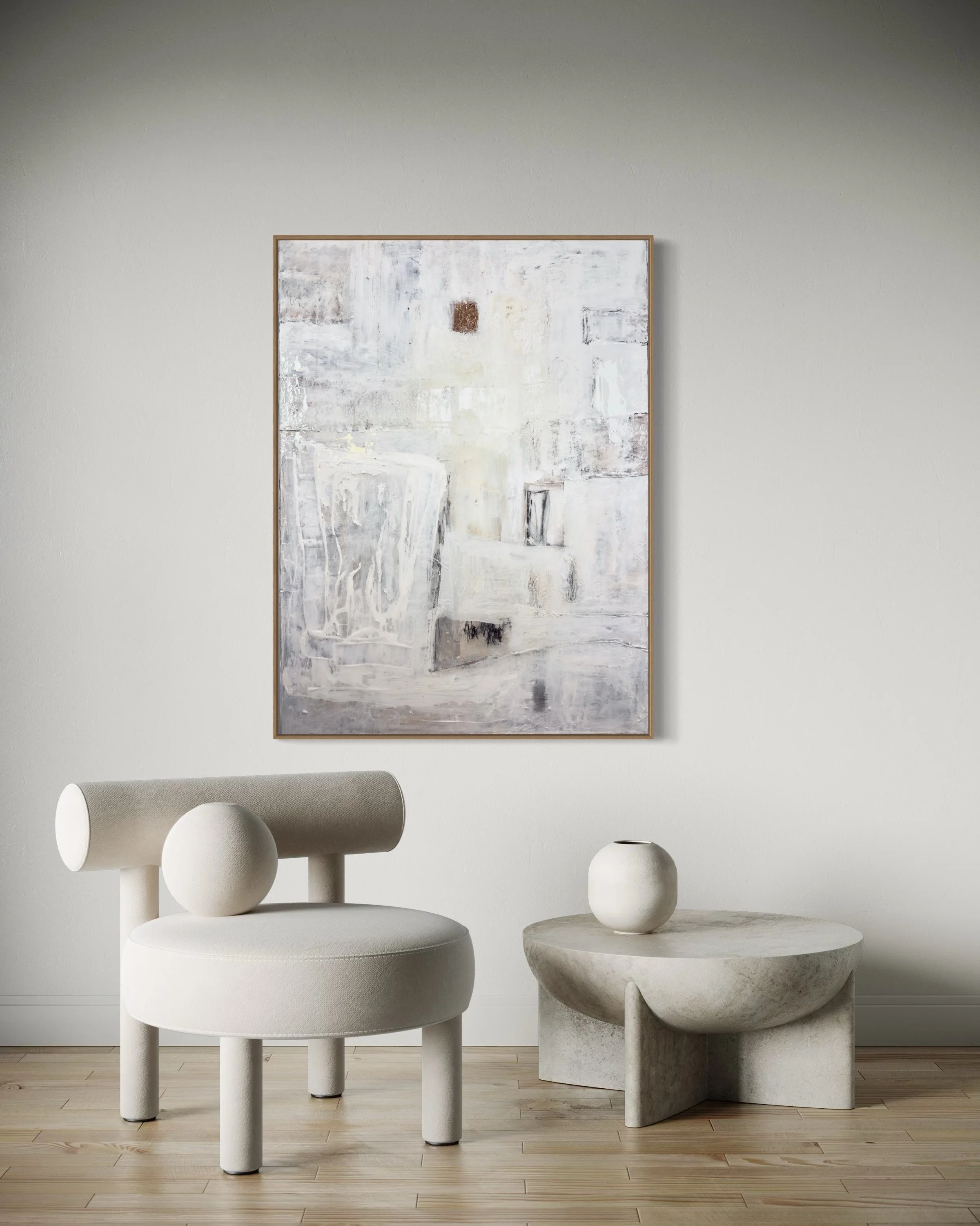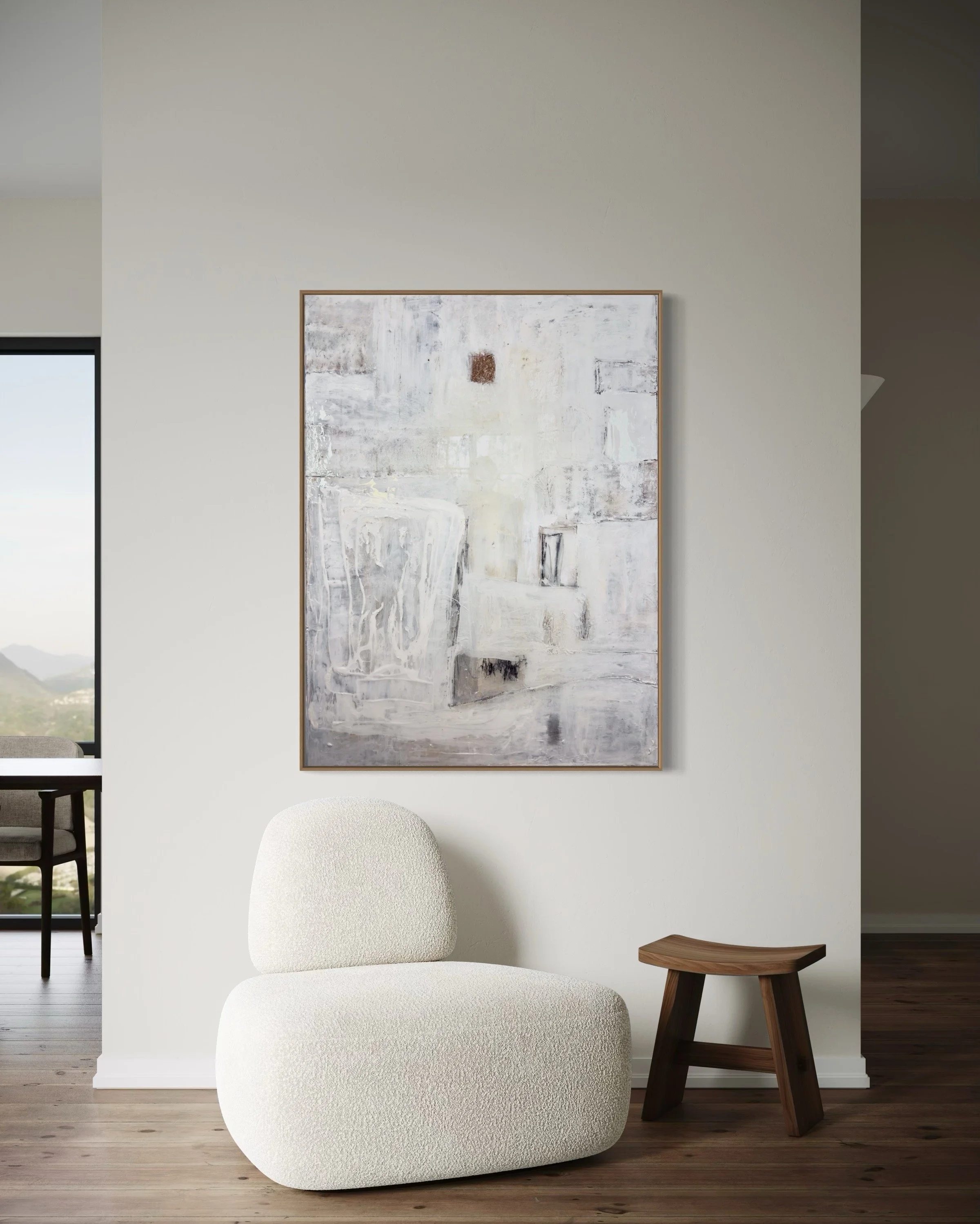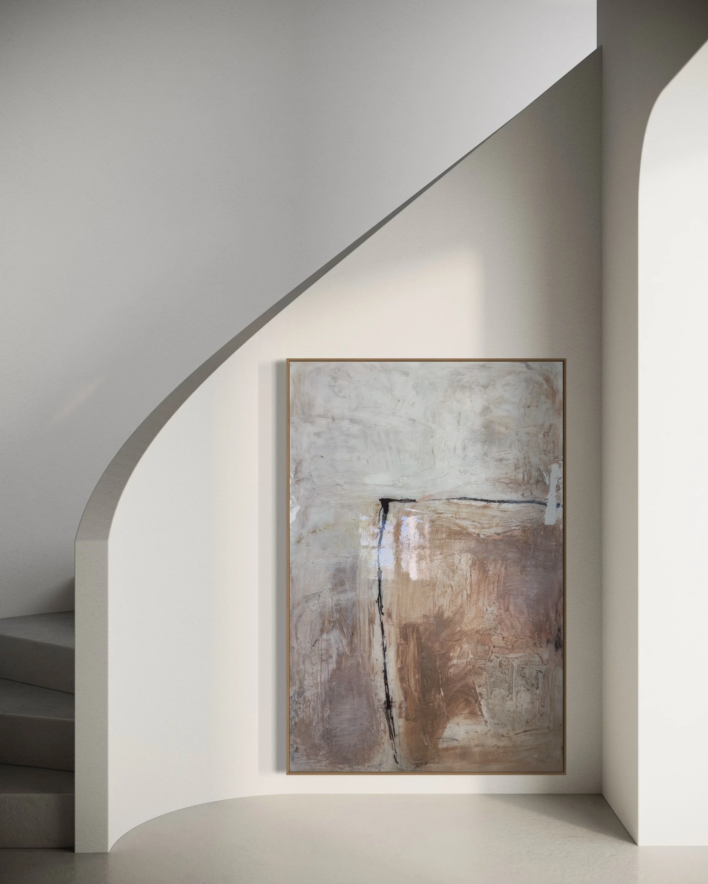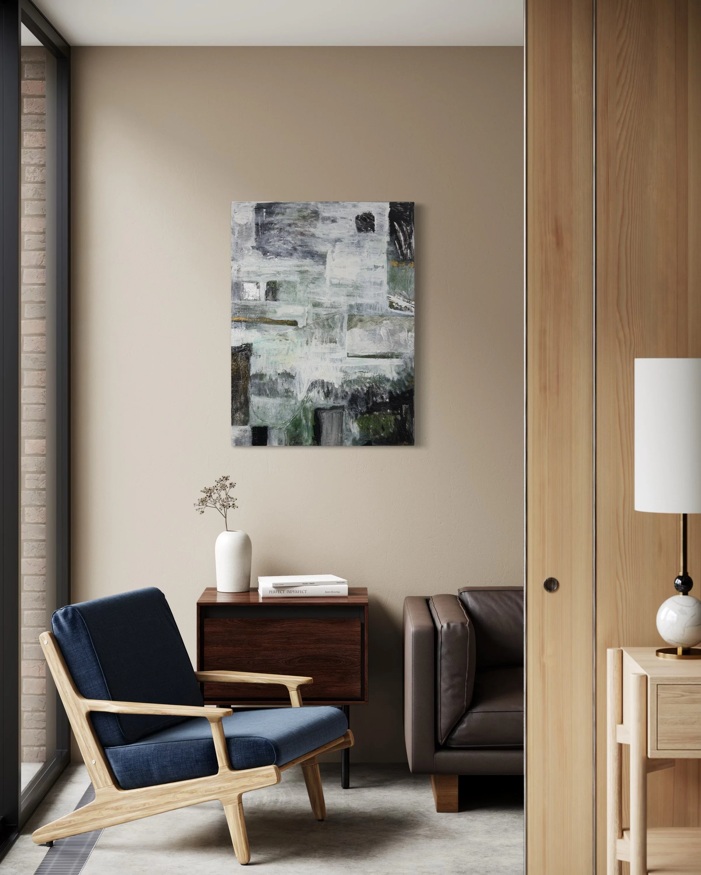Specializing in acrylic and mixed media on panel, Lewis’ work features layered textures and neutral tones, creating timeless, sophisticated compositions that evoke harmony and emotional depth. Perfect for those seeking a serene yet powerful visual experience