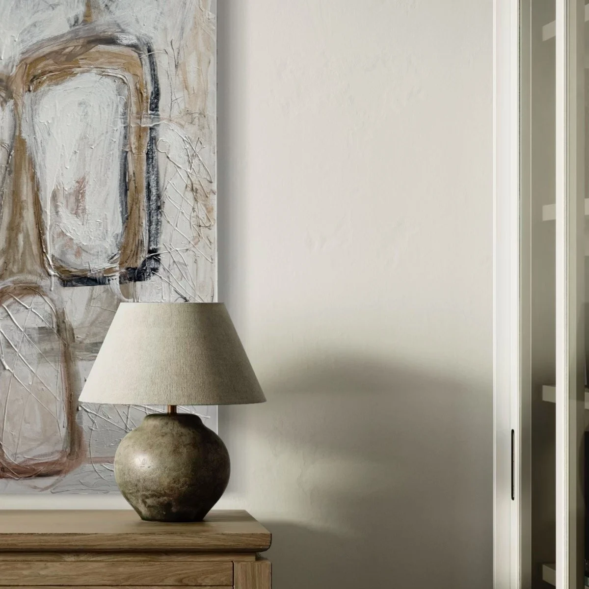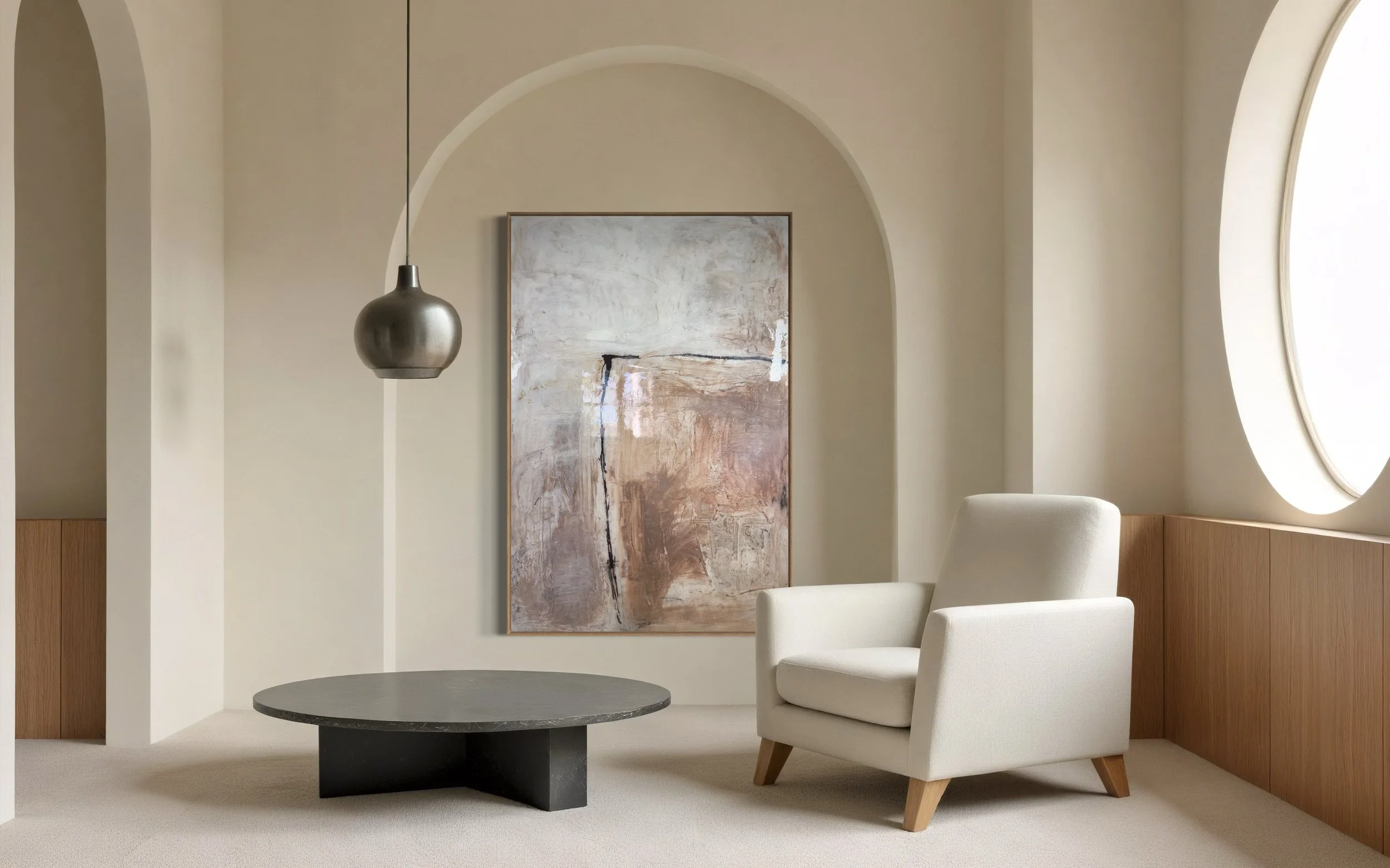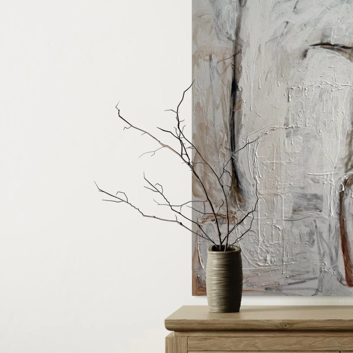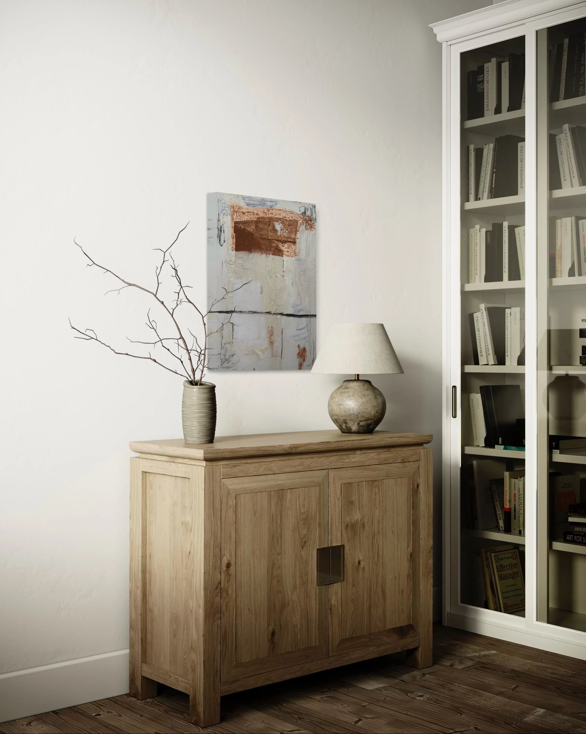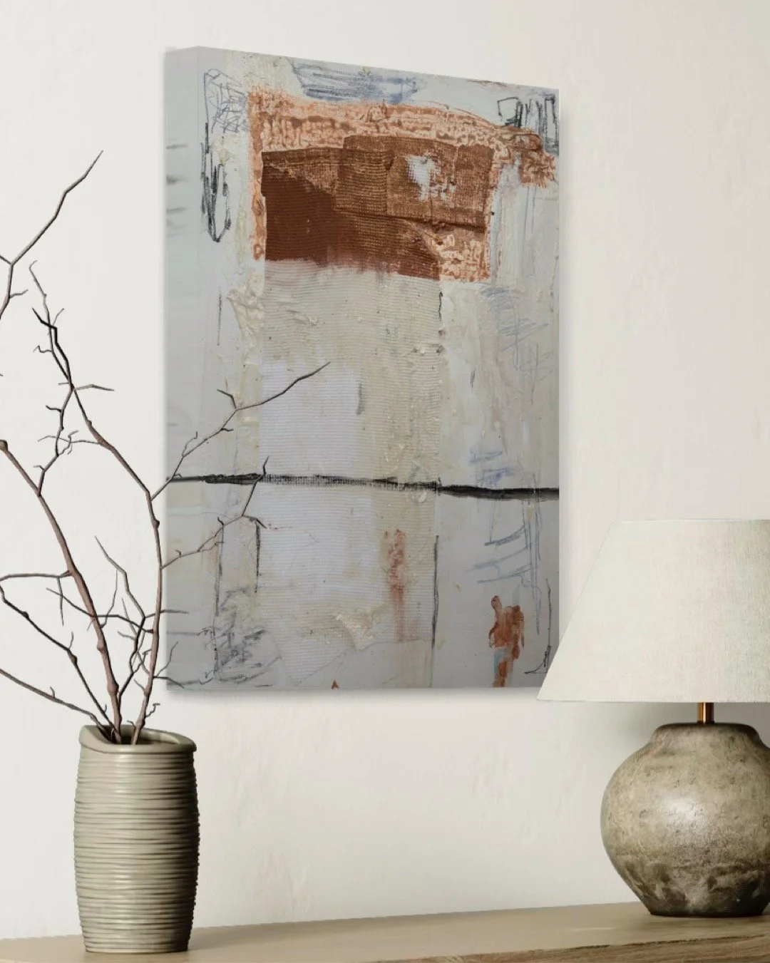 Specializing in acrylic and mixed media on panel, Lewis’ work features layered textures and neutral tones, creating timeless, sophisticated compositions that evoke harmony and emotional depth. Perfect for those seeking a serene yet powerful visual experience